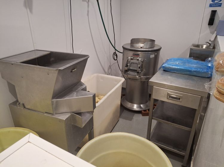 Potato Room 150 sq.ft. (14 sq.m) with fridges, freezers, chipper, peeler and sluice.